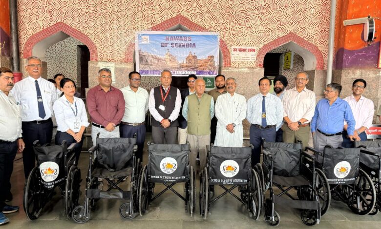 लखनऊ : लोक आयुक्त, उत्तर प्रदेश न्यायमूर्ति संजय मिश्रा एवं सिंधिया ओल्ड बॉइज टीम द्वारा चारबाग रेलवे स्टेशन पर असहाय एवं दिव्यांग यात्रियों की सुविधा के लिए 07 व्हीलचेयर प्रदान की गईं। इस अवसर पर उत्तर रेलवे, लखनऊ मंडल के मंडल रेल प्रबंधक श्री एस. एम. शर्मा भी उपस्थित रहे ।