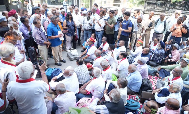 ईपीएफओ मुख्यालय के बाहर ईपीएस-95 पेंशनरों का विशाल प्रदर्शन, सुप्रीम कोर्ट के आदेश के पालन की मांग