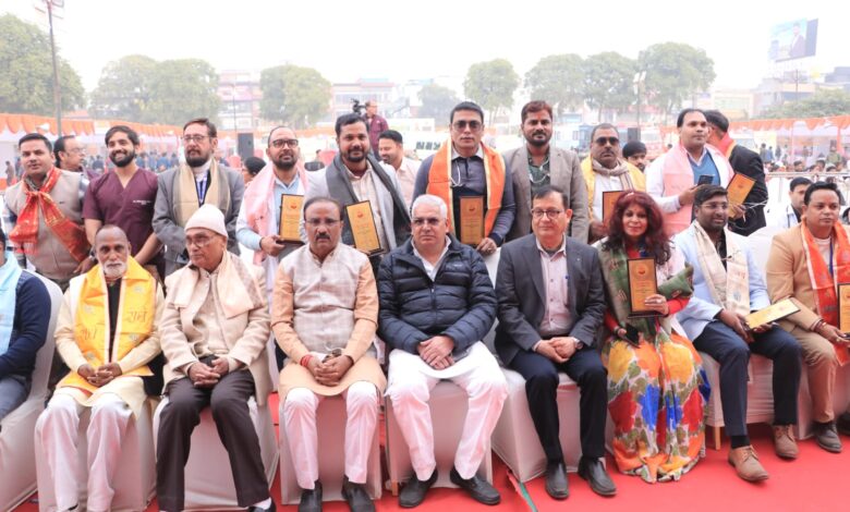 लखनऊ : भाजपा वरिष्ठ डॉक्टर नीरज सिंह के संयोजन में आयोजित दो दिवसीय अटल स्वास्थ्य मेला-6 के समापन अवसर पर मुख्य अतिथि उत्तर प्रदेश सरकार के राज्य मंत्री *मयंकेश्वर शरण सिंह* और सदस्य विधान परिषद मुकेश शर्मा ने स्वास्थ्य मेले में अस्पतालों के स्टॉल लगाकर निशुल्क स्वास्थ्य सेवाएं दे रहे सभी चिकित्सकों को अंग वस्त्र और स्मृति चिन्ह भेंट करके सम्मानित किया। स्वास्थ्य मेले में उपचार के लिए आए सभी जरूरतमंदों को ठंड से राहत प्रदान करने के लिए सभी को कंबल भी वितरित किये।