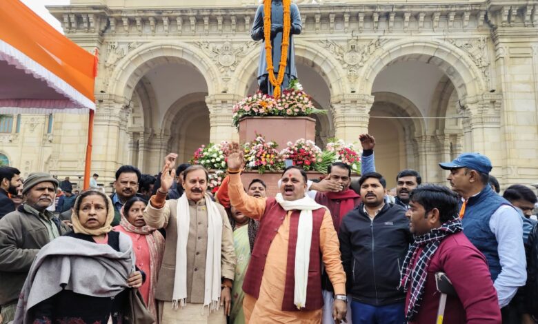 हवन-पूजन के पश्चात प्रदेश अध्यक्ष डॉ. रामाशीष राय एवं राष्ट्रीय महासचिव अनिल दुबे के नेतृत्व में पार्टी पदाधिकारियों और कार्यकर्ताओं ने विधान भवन स्थित चौधरी चरण सिंह जी की प्रतिमा पर पुष्पांजलि अर्पित की। इस दौरान “चौधरी साहब अमर रहें” और “जब तक सूरज-चांद रहेगा, चौधरी साहब का नाम रहेगा” जैसे गगनभेदी नारों से विधान भवन परिसर गूंज उठा।